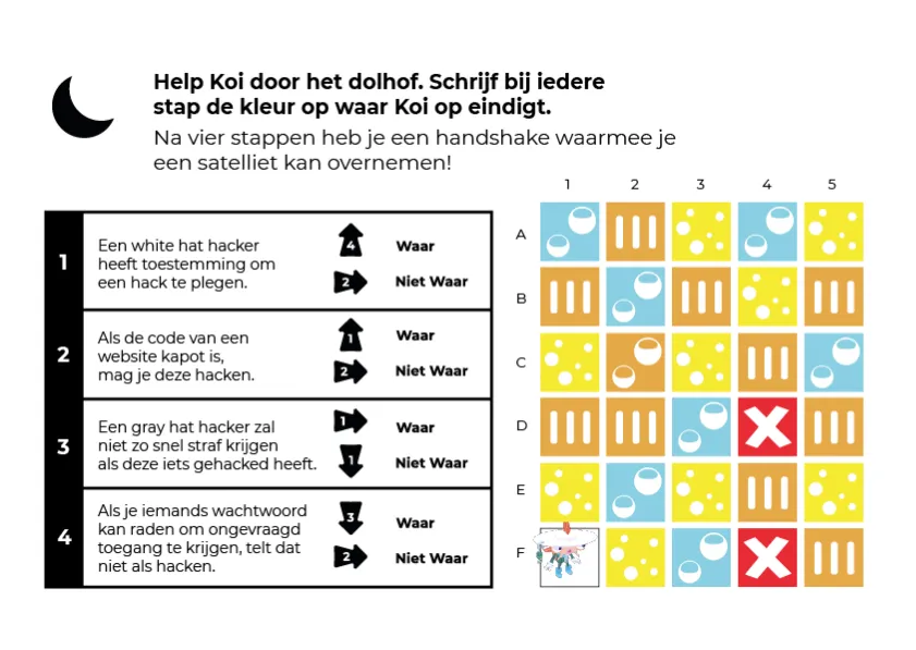 In deze klassenquest ervaren leerlingen wat het is om voor de keuze te staan of ze de verkeerde of de juiste kant op gaan. Ze worden een ethisch hacker of een black hat hacker! Kimi Klepto neemt de klas mee in het verhaal. Kimi is op weg naar een observatorium om sterren en satelieten te kijken. Kimi heeft afgesproken liefje te bellen als er een vallende ster te zien is. Wanneer dat gebeurt kan Kimi geen verbinding maken. Maar dat laat Kimi niet zomaar gebeuren en besluit satelieten te hacken. Dan worden Kimi en de klas voor een keuze gesteld: Ga je door met je plan of zorg je dat je toestemming hebt?