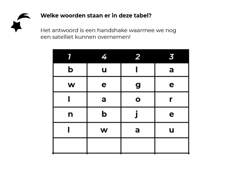 - Bekijk de tabel: De tabel bevat rijen met letters in kolommen 1, 2, 3 & 4. De cijfers bepalen de volgorde waarin de kolommen gelezen moeten worden.